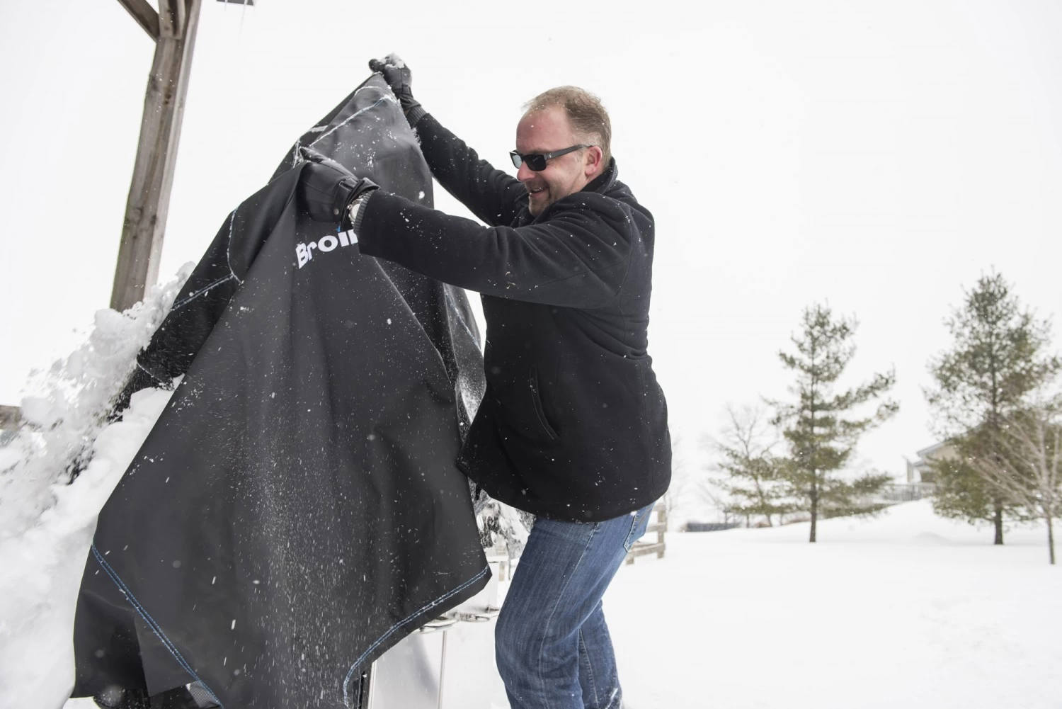 Mit seitlichen Klettverschlüssen lässt sich die Haube leicht fixieren und zwei stabile Grifflaschen helfen beim Abziehen.