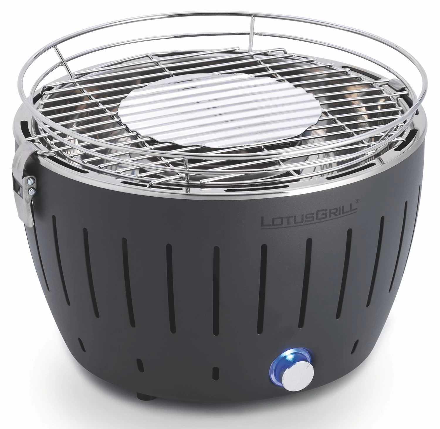 Der LotusGrill S in Anthrazitgrau – einfach entzünden und raucharm grillen